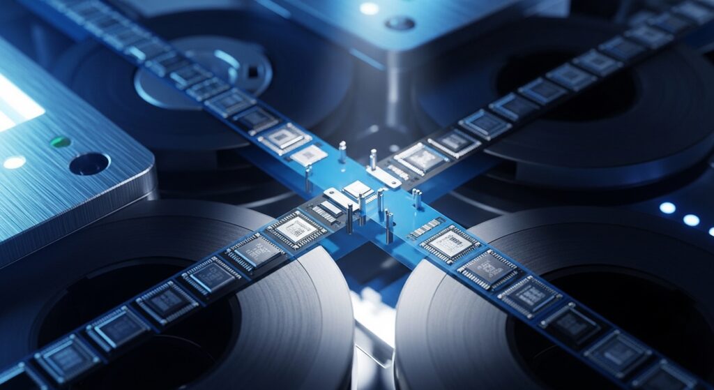 スプライシングテープ(繋ぎテープ)がもたらすノンストップ生産 実装工程において、チップ部品のキャリアテープを接続するスプライシング(繋ぎ)作業は、一見単純な作業に見えますが、実はラインの稼働率に直結します。