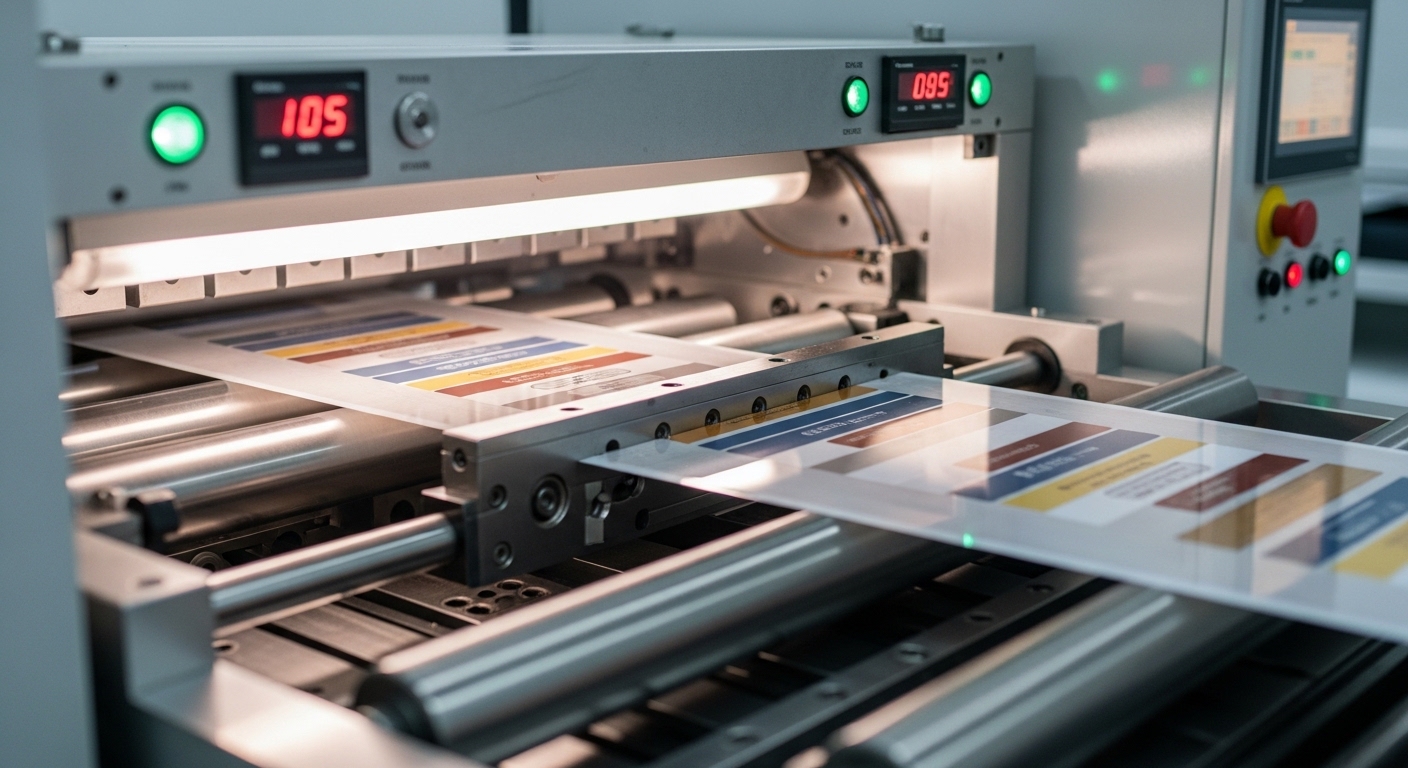 フィルムや両面テープ、ラベルなどの素材に対し、貼り合わせからプレス、ラミネート加工までを一貫して行うことで、素材の伸びや歪みを最小限に抑えた加工が可能になります。