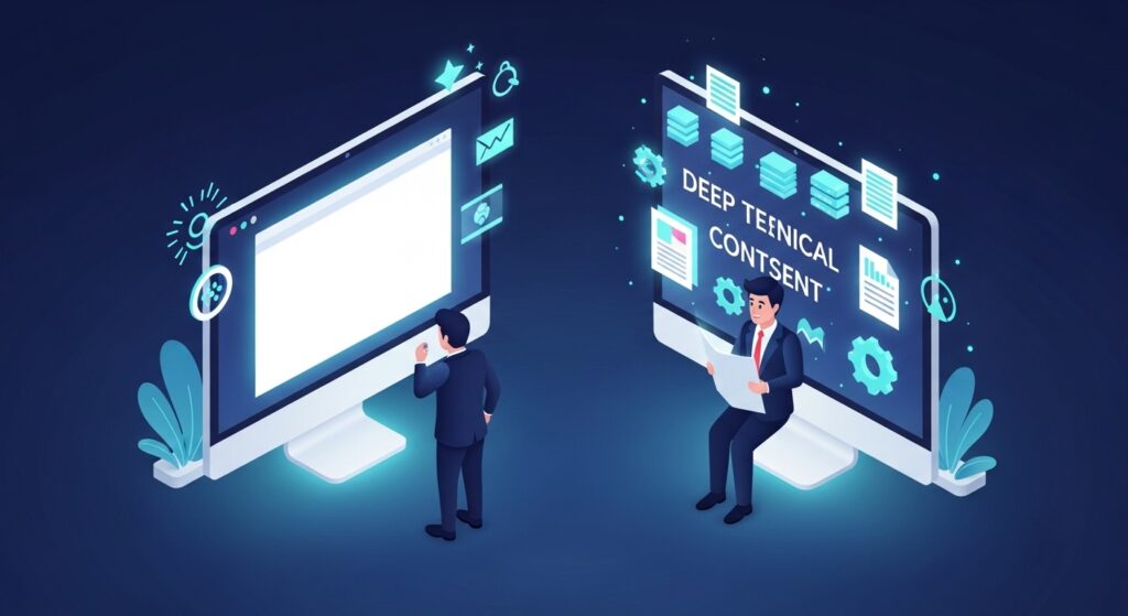 検索エンジンは、ユーザーが検索結果をクリックした後に、別のサイトに戻って再検索する行動(ポゴスティッキング)を嫌い、一つの記事で悩みが完結する網羅性の高いコンテンツを高く評価するからです。