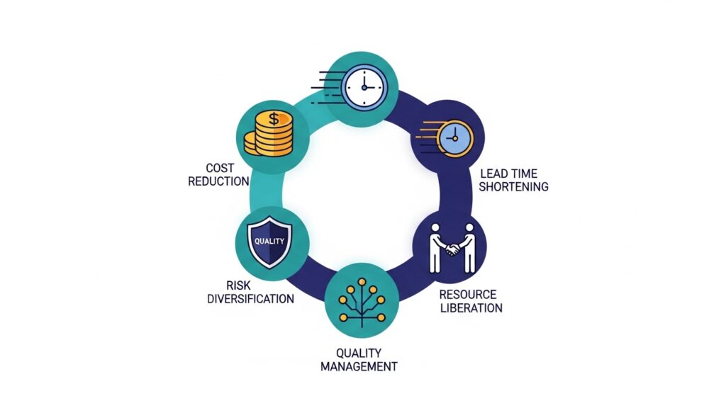 コスト削減・リードタイム短縮・品質管理強化・リスク分散・社内リソースの解放——これらのメリットは、適切なパートナーと組むことで現実のものになります。