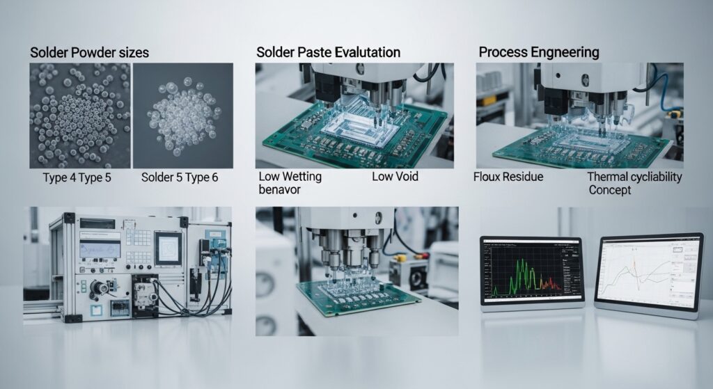 特に大切なのは、合金系、フラックス設計、粉末粒径、印刷安定性、濡れ性、ボイド、残渣、信頼性、工程適合性の9つです。