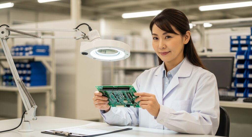 「はんだ付け・修正(リペア)担当」:自動実装ラインでは対応できない異形部品・特殊部品のはんだ付けや、検査で見つかった不良のリペア(修正)を手作業で行う。